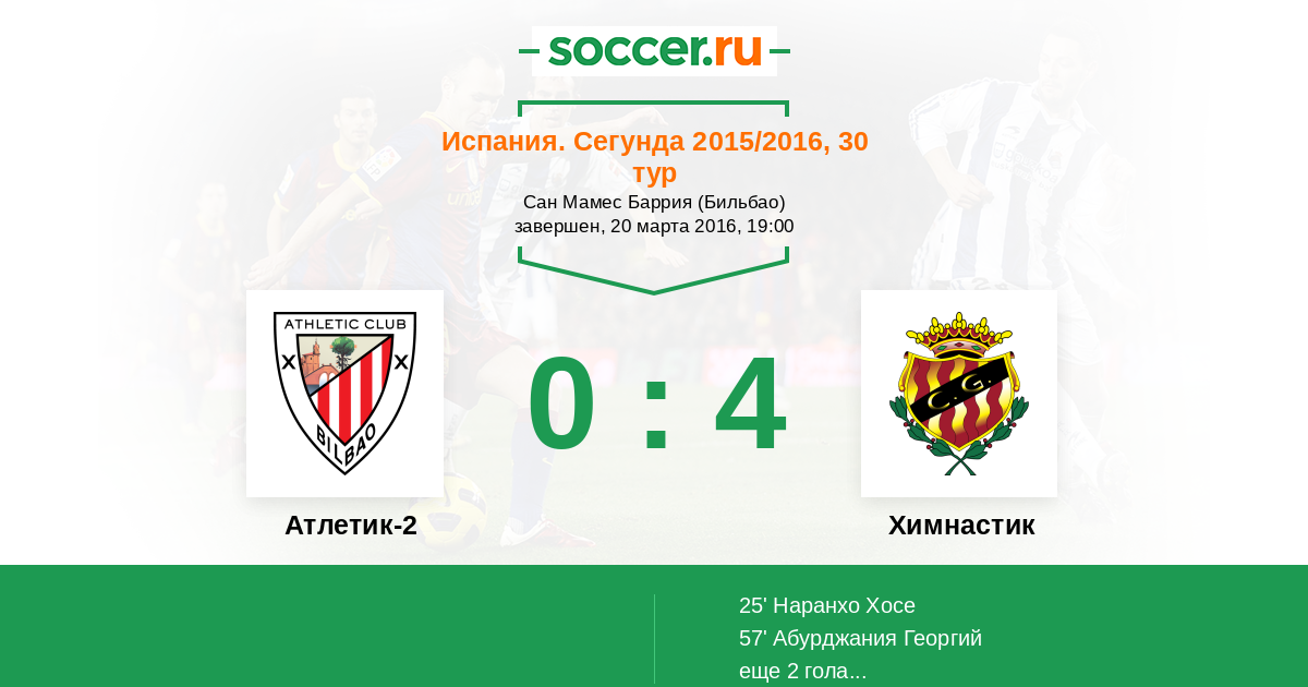 Протокол матча Атлетик-2 против Химнастик