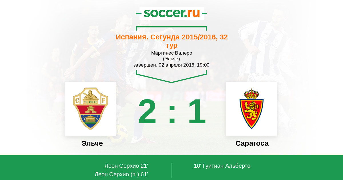 Протокол матча Эльче против Сарагоса