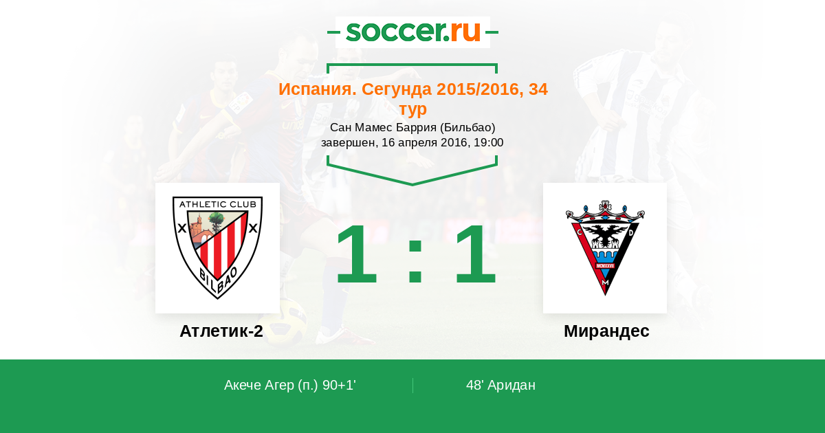 Протокол матча Атлетик-2 против Мирандес