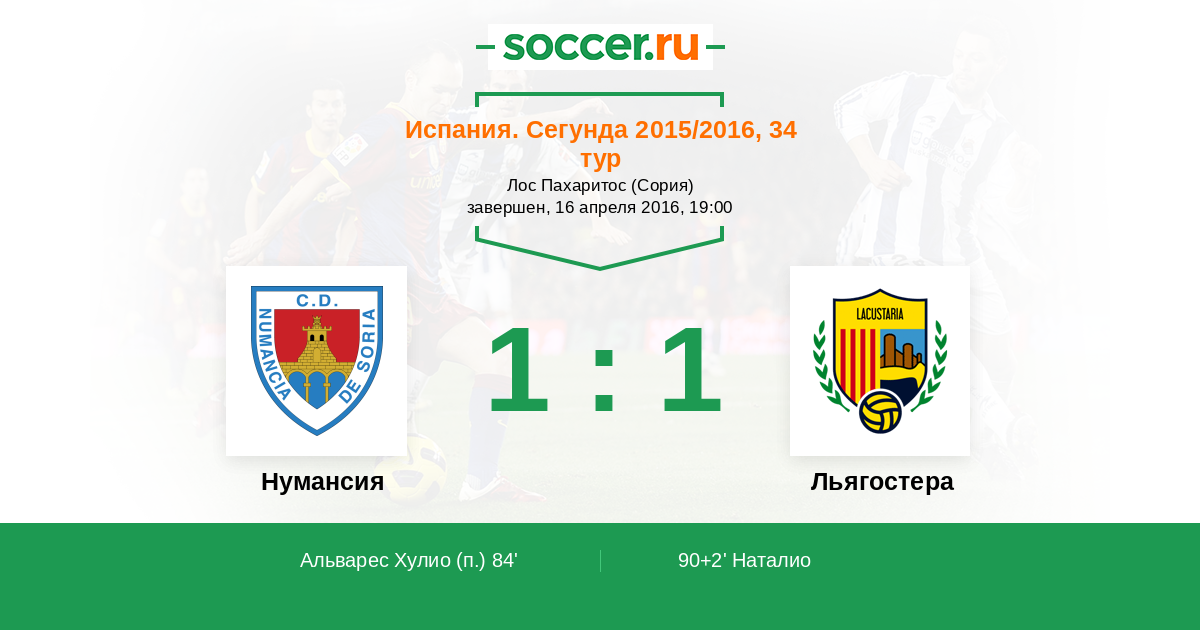 Протокол матча Нумансия против Льягостера