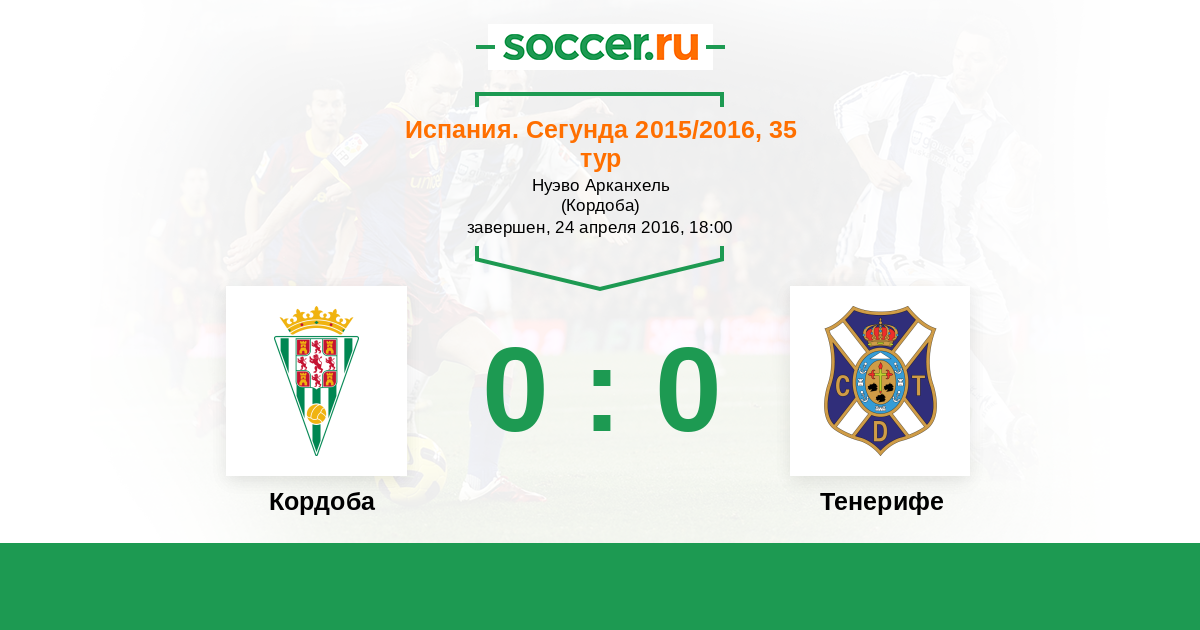 Протокол матча Кордоба против Тенерифе