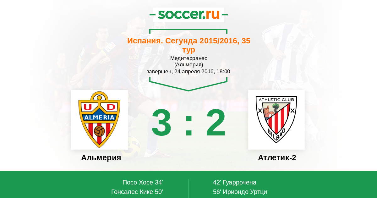Протокол матча Альмерия против Атлетик-2