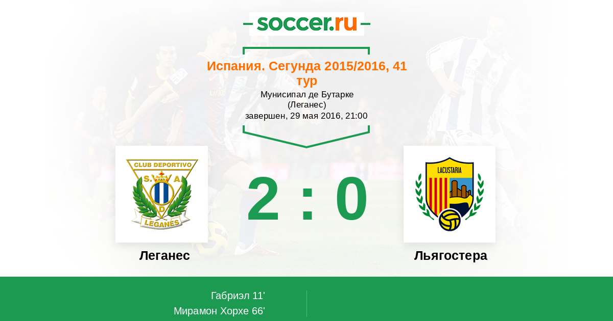Протокол матча Леганес против Льягостера