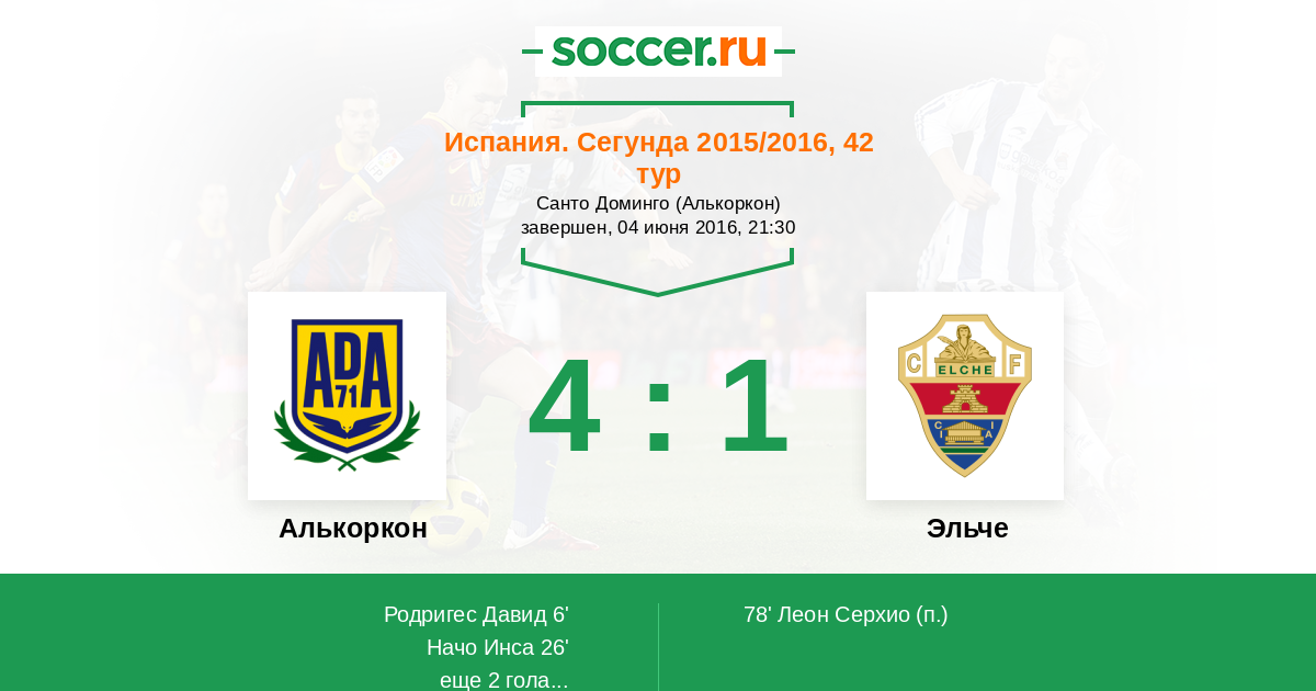 Протокол матча Алькоркон против Эльче
