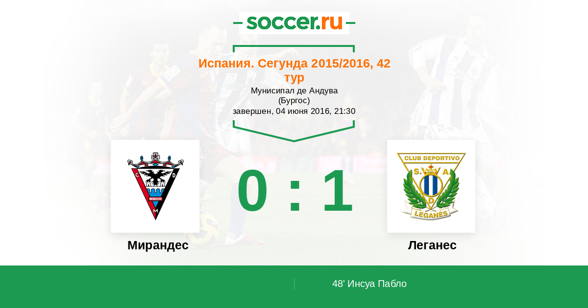 Протокол матча Мирандес против Леганес