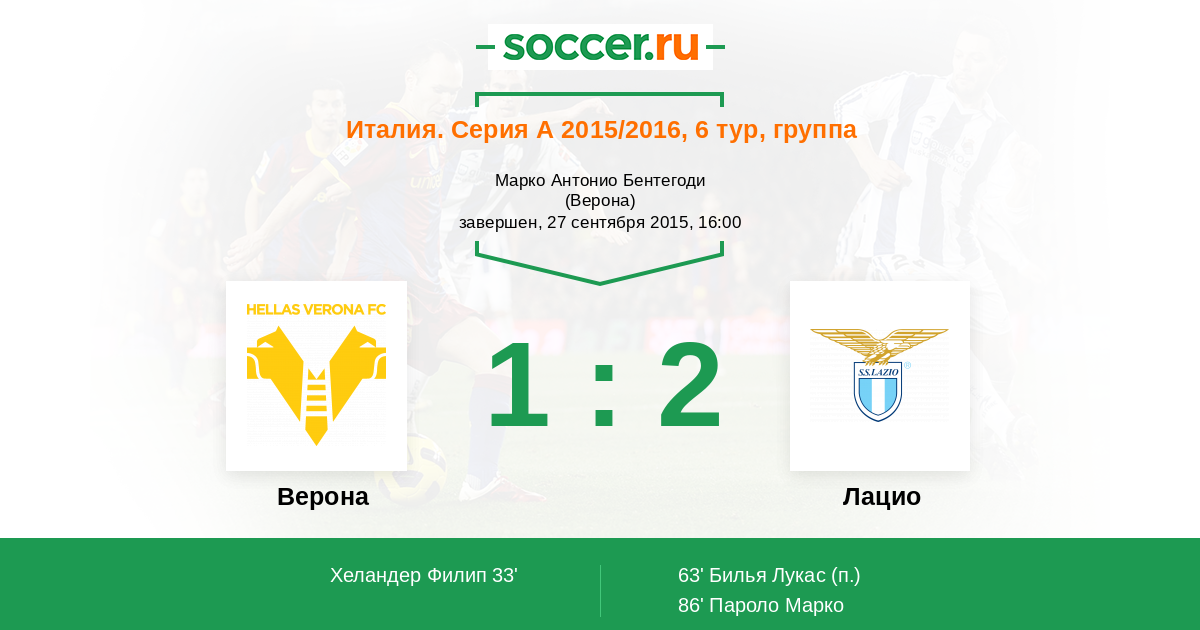 86' (1:2) Пароло Марко (16) (Билья Лукас (20))
