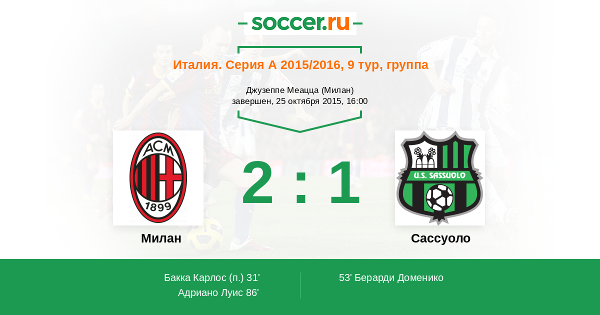 Протокол матча Милан против Сассуоло