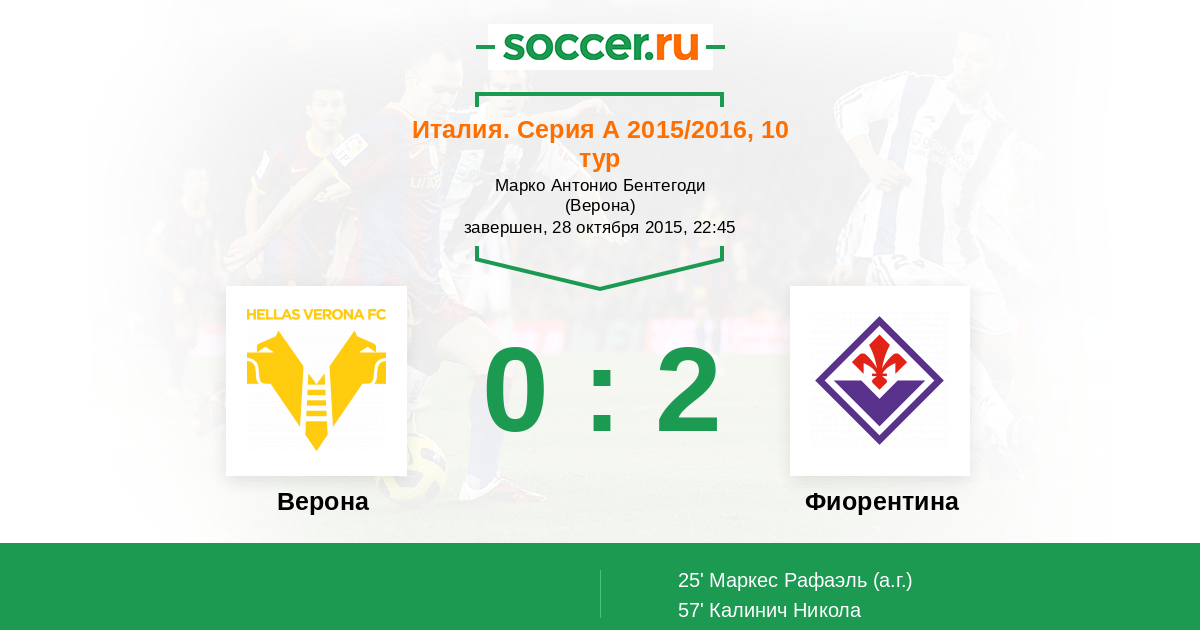 Протокол матча Верона против Фиорентина