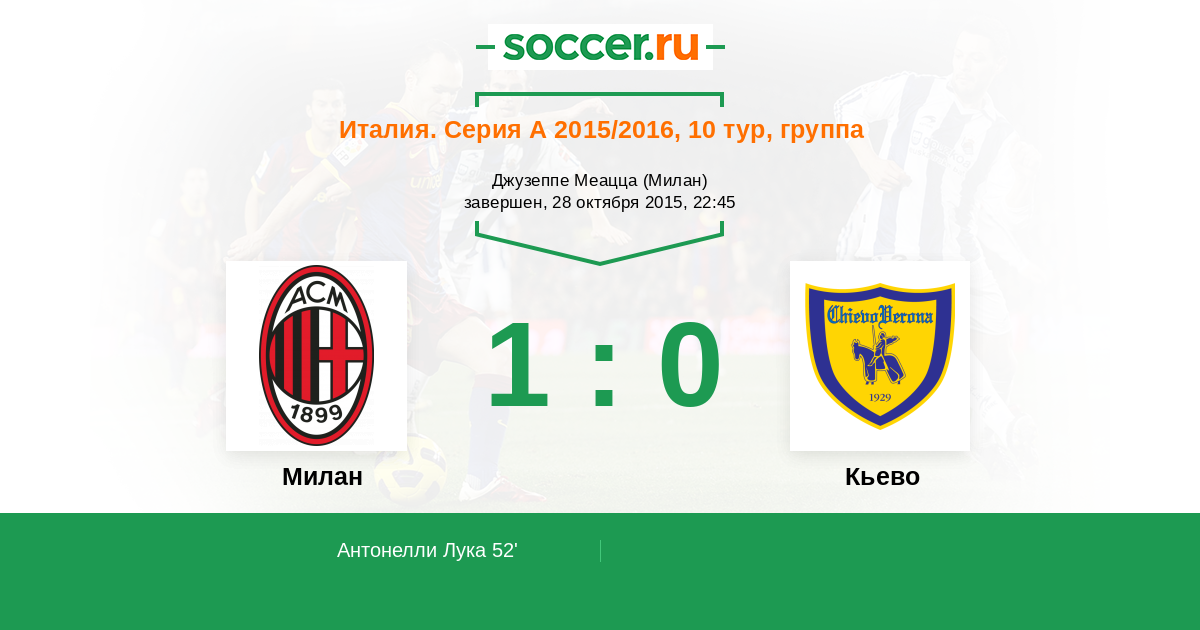 Протокол матча Милан против Кьево