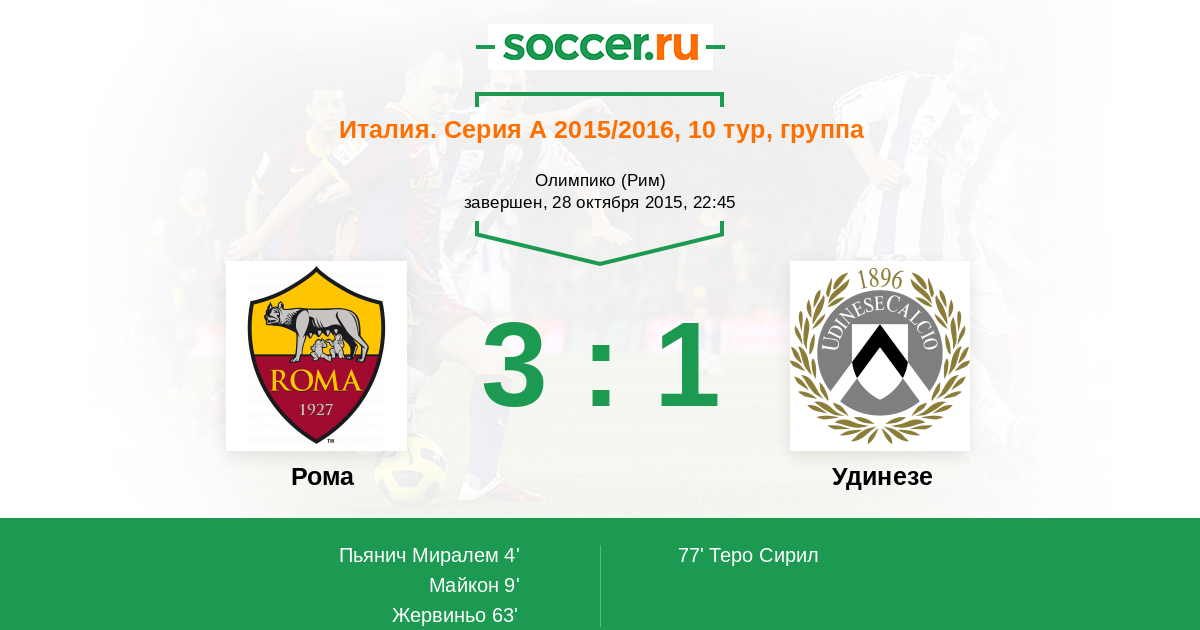 Протокол матча Рома против Удинезе
