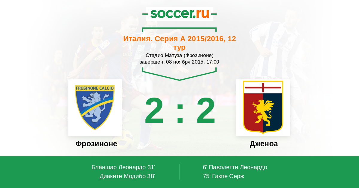Протокол матча Фрозиноне против Дженоа