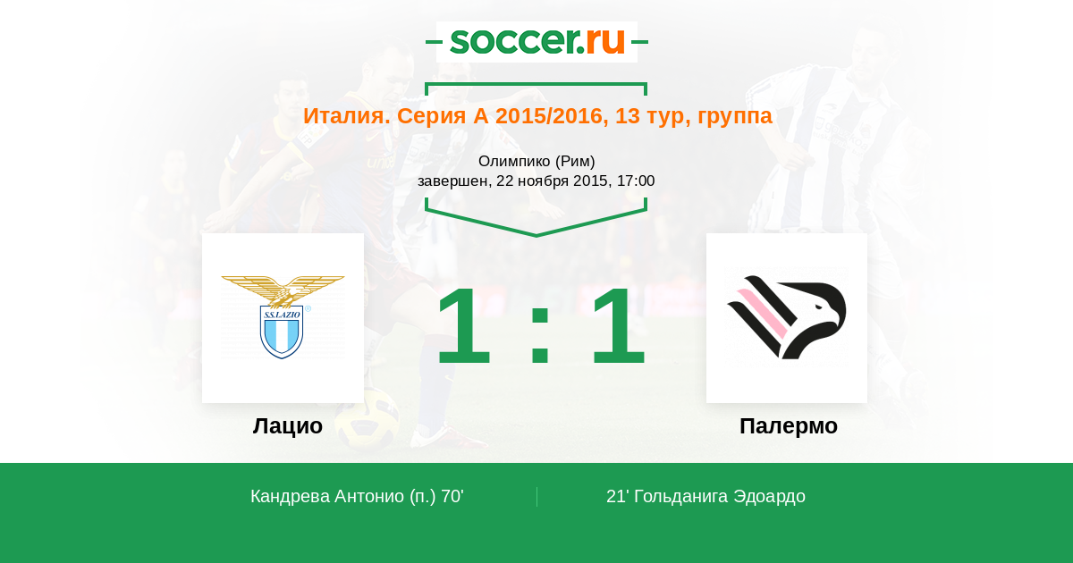 Протокол матча Лацио против Палермо