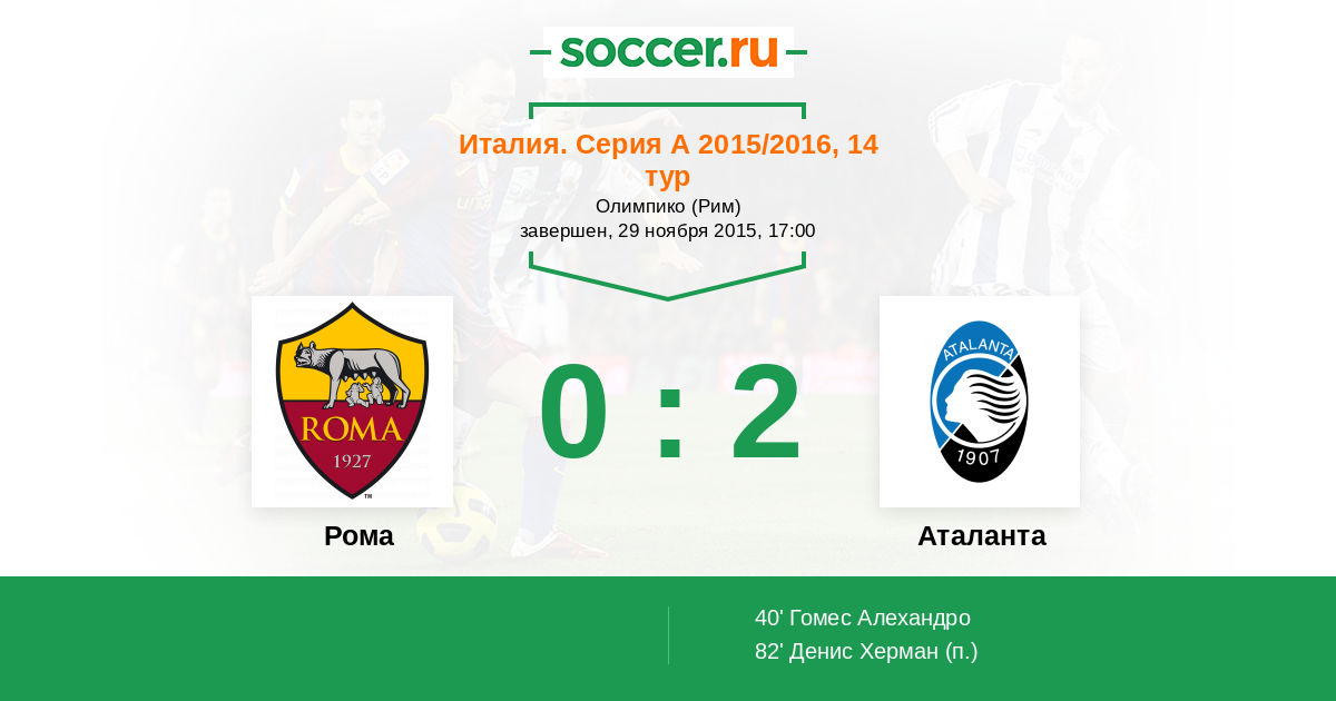 Протокол матча Рома против Аталанта