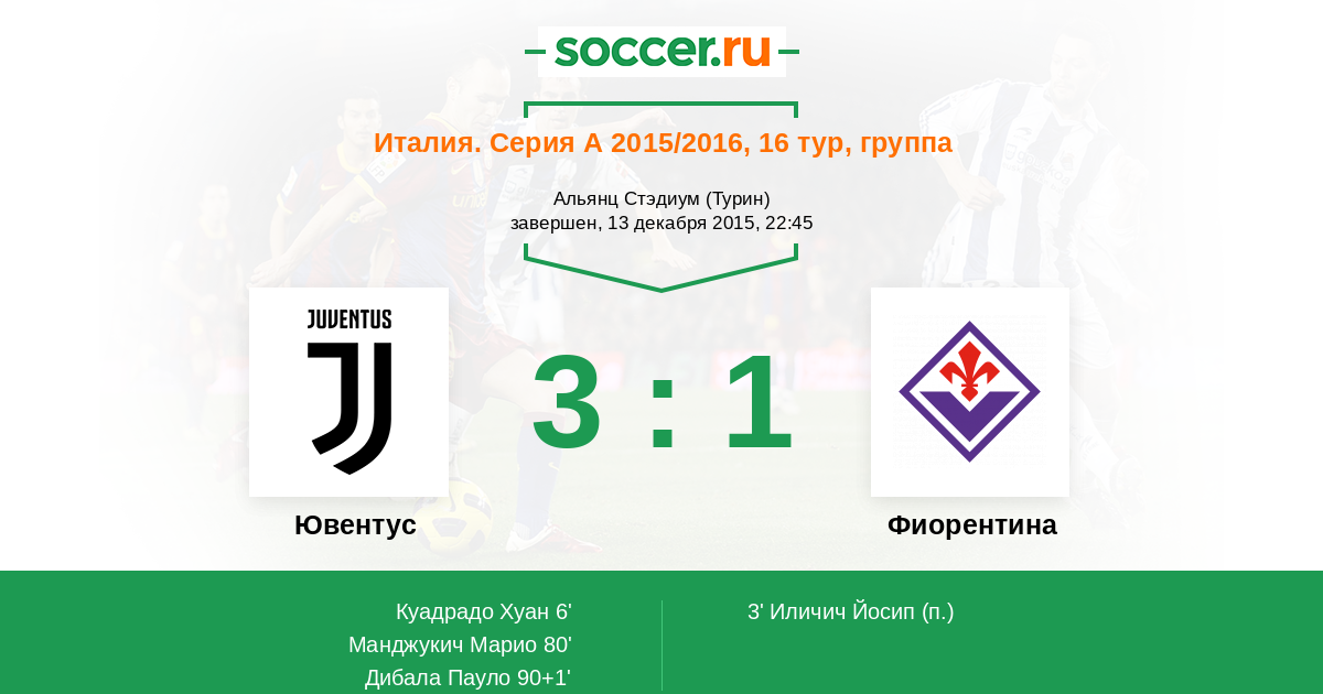 Протокол матча Ювентус против Фиорентина