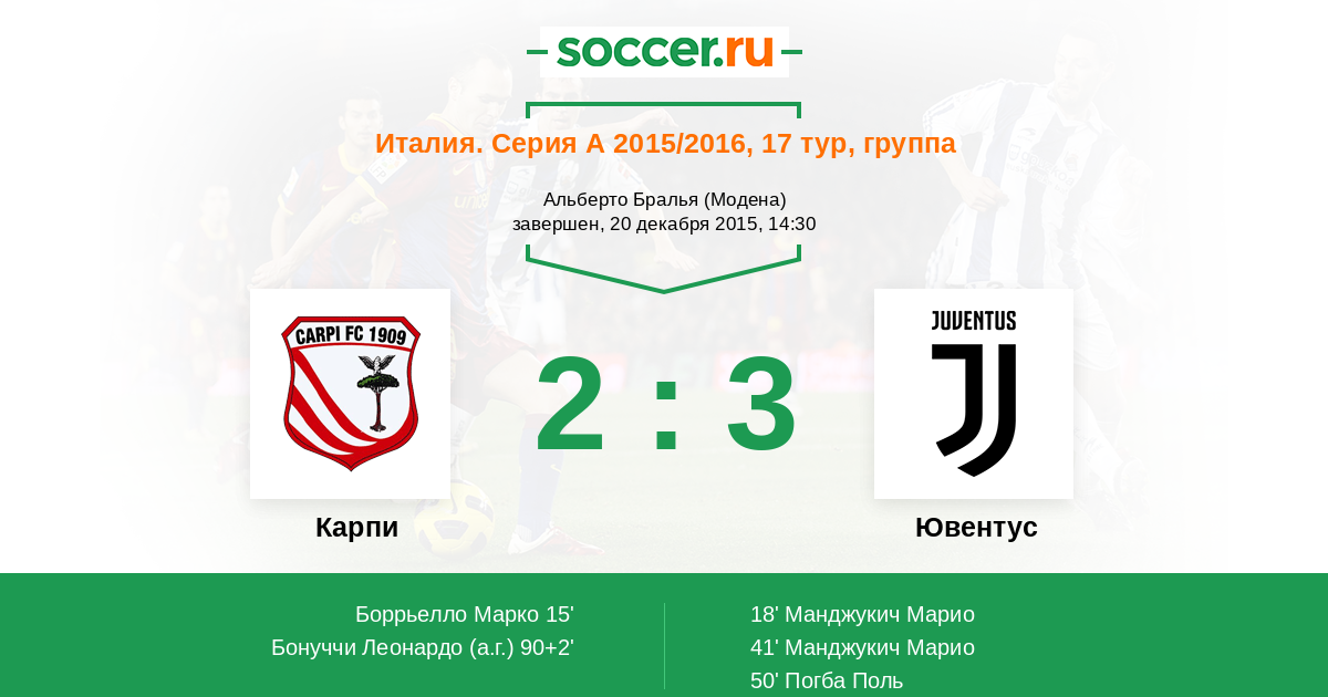 Протокол матча Карпи против Ювентус