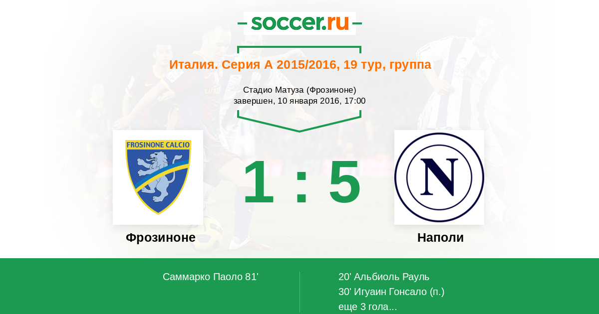 Протокол матча Фрозиноне против Наполи