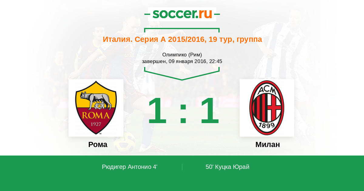 Протокол матча Рома против Милан