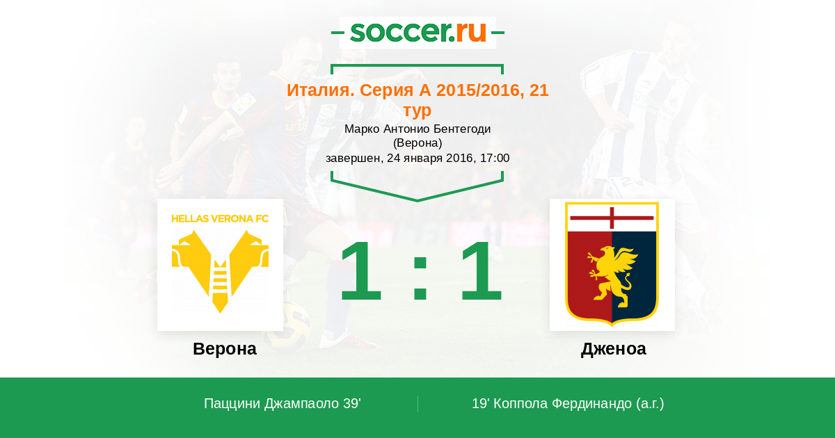 Протокол матча Верона против Дженоа