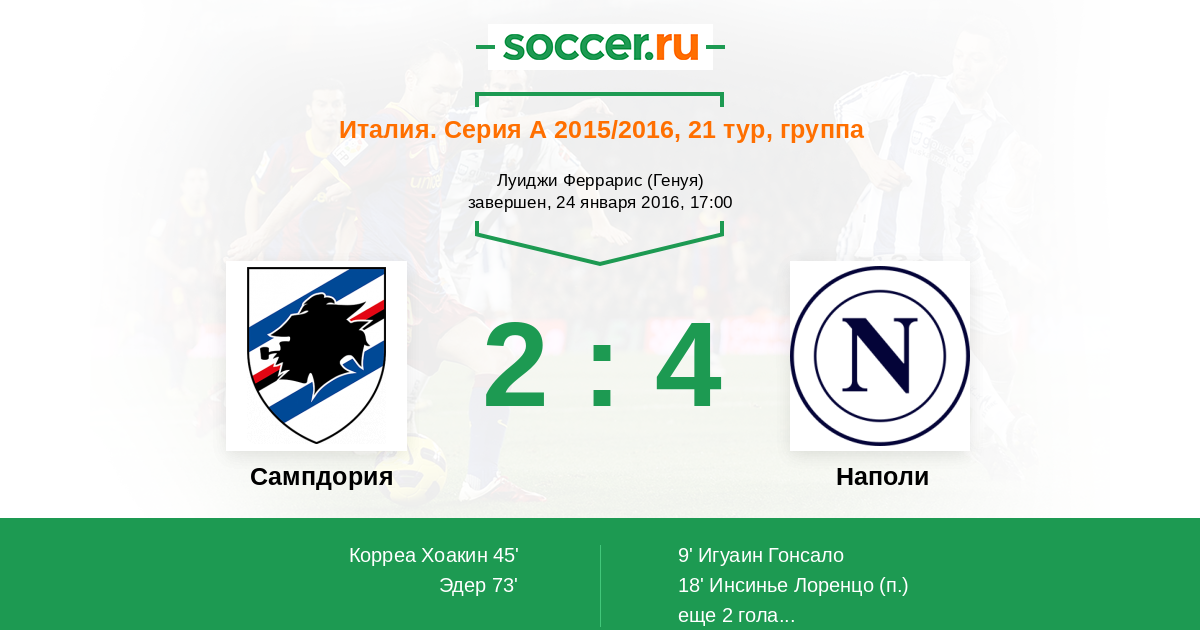 Протокол матча Сампдория против Наполи