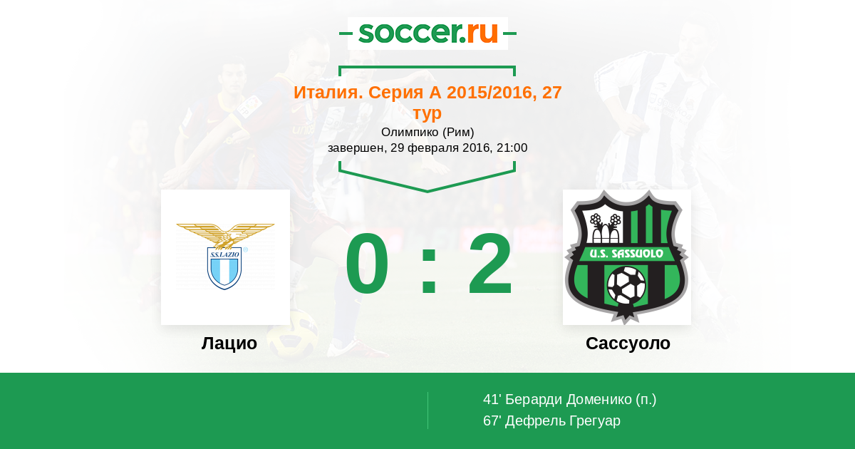 Протокол матча Лацио против Сассуоло