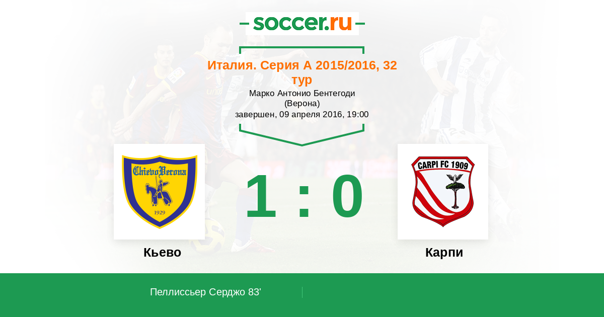 Протокол матча Кьево против Карпи