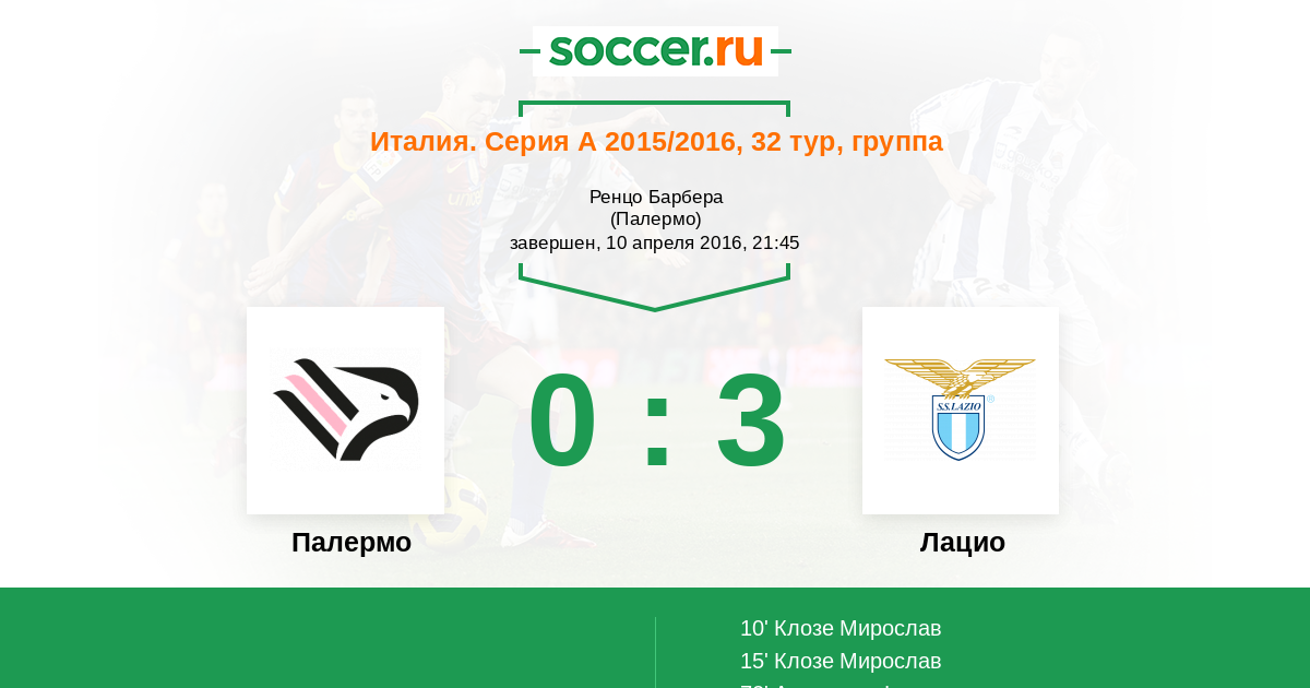 72' (0:3) Андерсон Фелипе (10) (Клозе Мирослав (11))