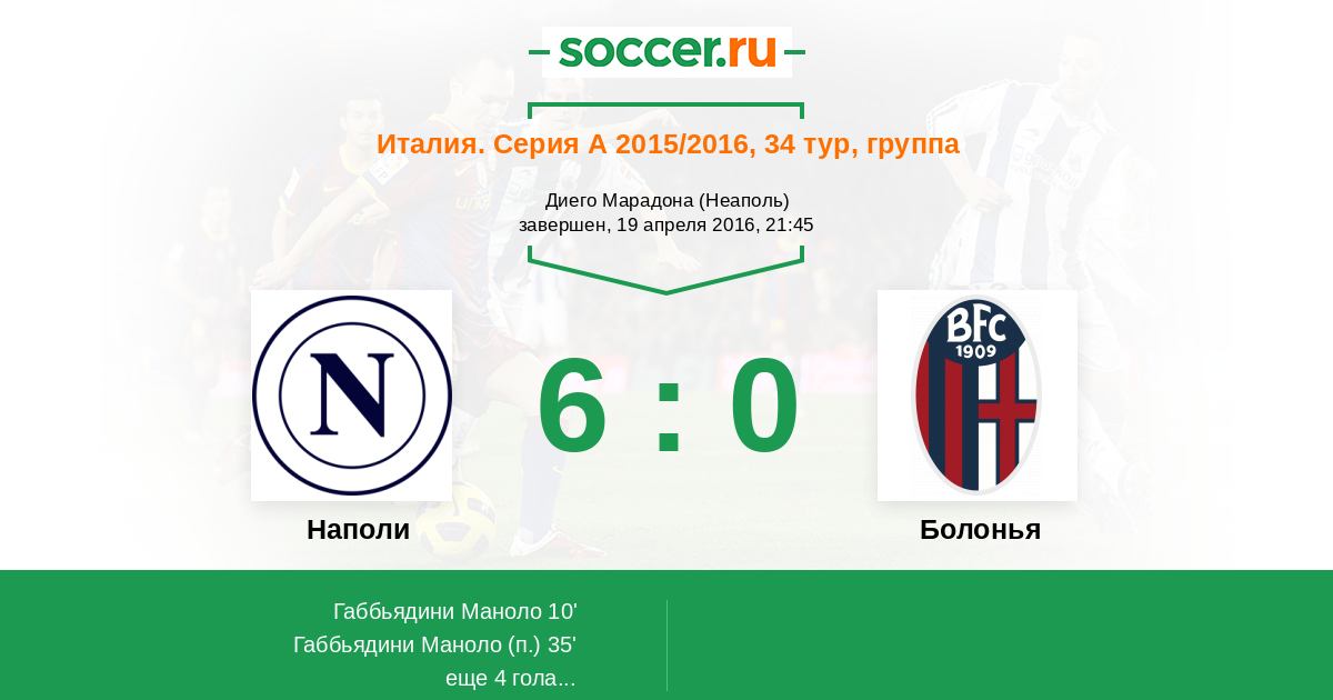 Протокол матча Наполи против Болонья