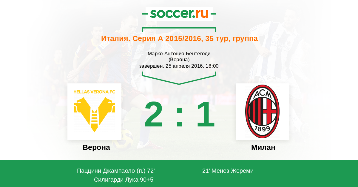 Протокол матча Верона против Милан