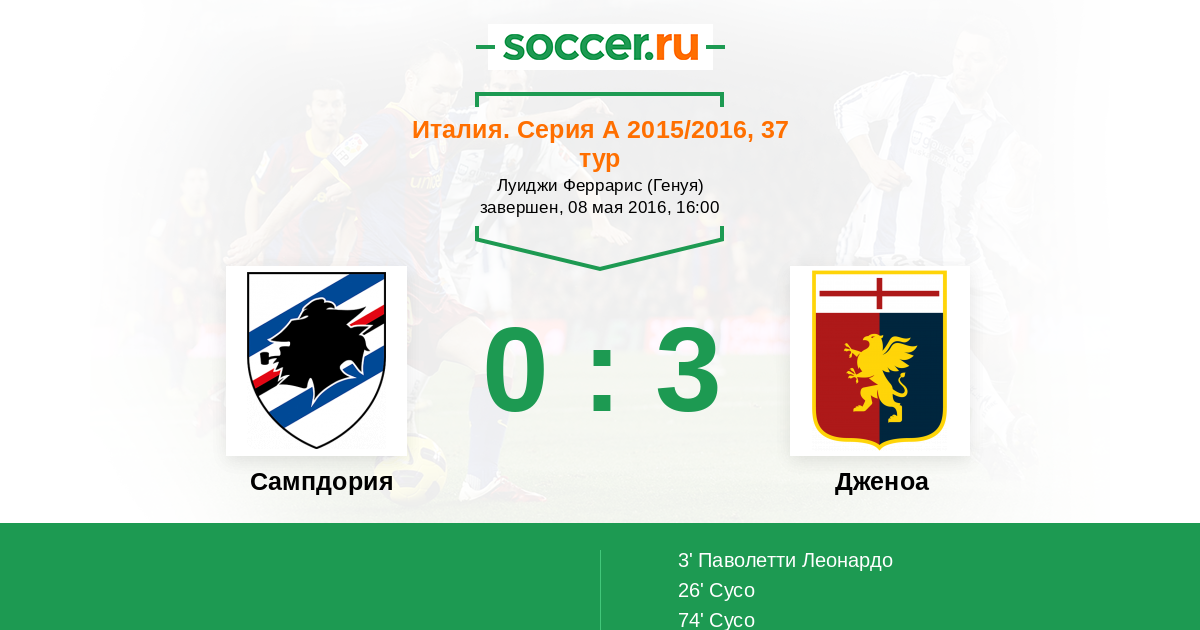 Протокол матча Сампдория против Дженоа