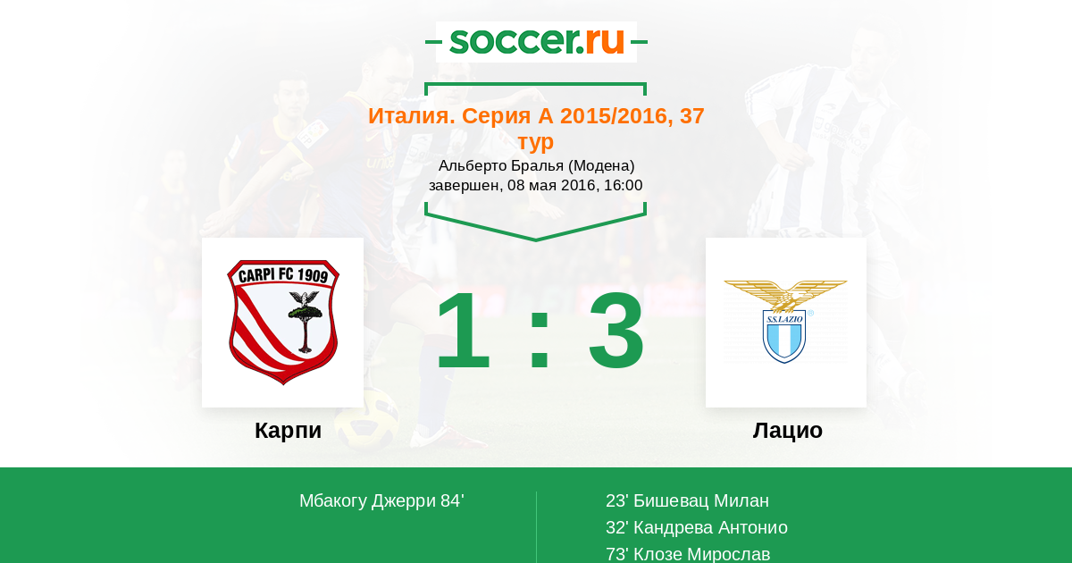 Протокол матча Карпи против Лацио
