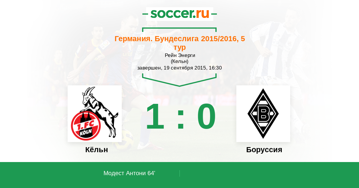 Протокол матча Кёльн против Боруссия
