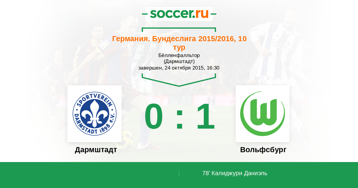 Протокол матча Дармштадт против Вольфсбург