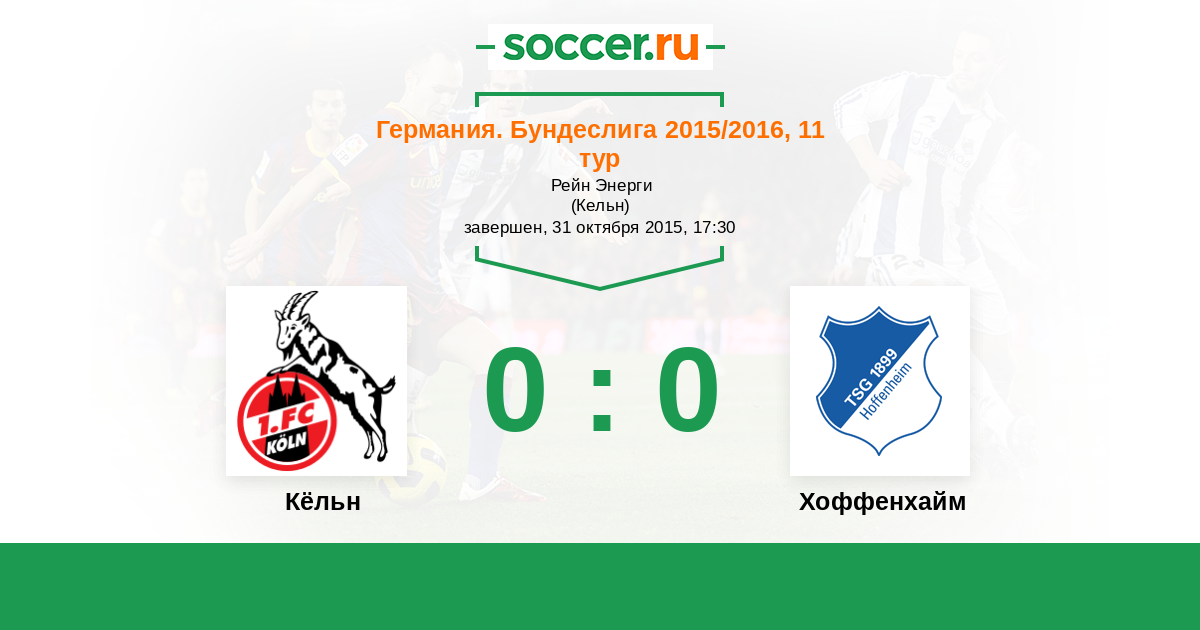 Протокол матча Кёльн против Хоффенхайм