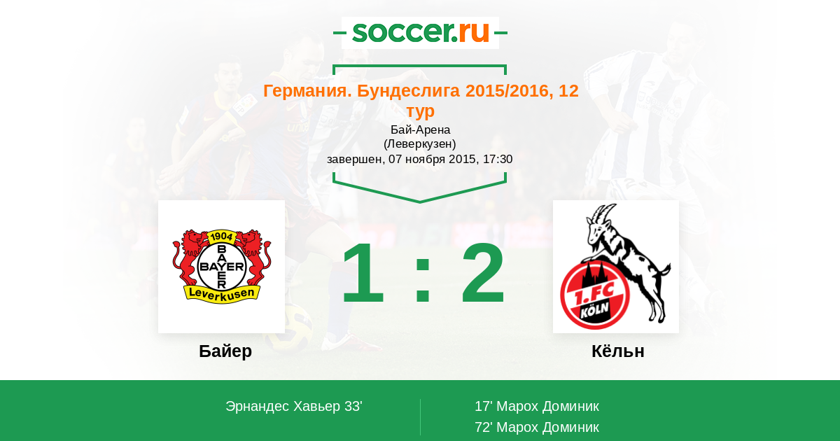 Протокол матча Байер против Кёльн