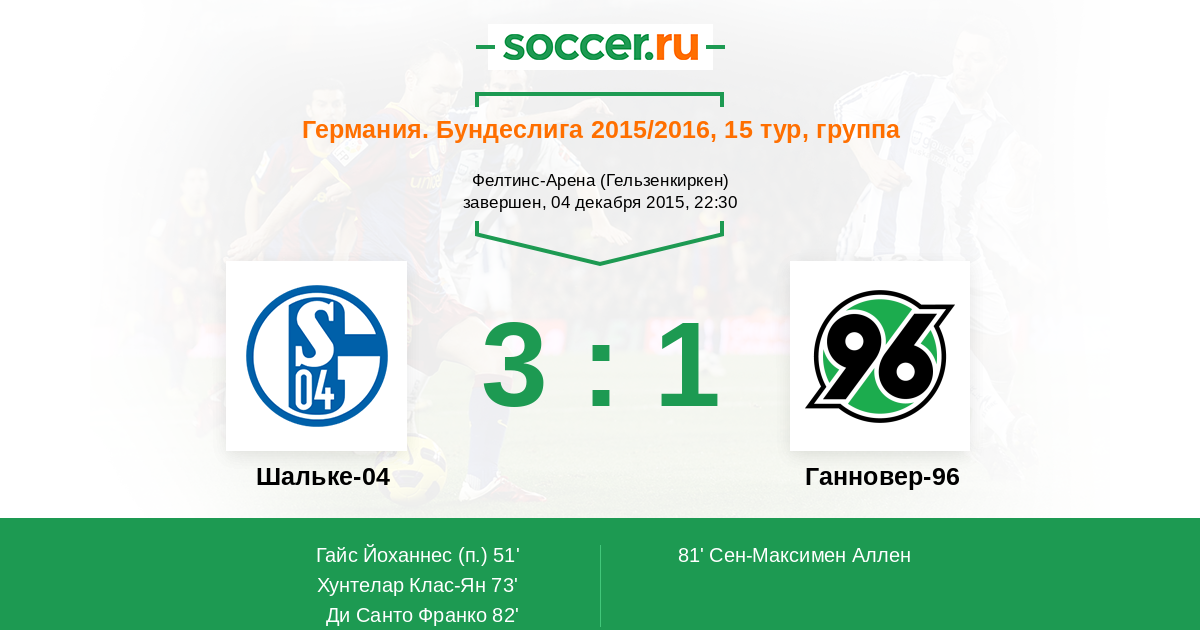 Протокол матча Шальке-04 против Ганновер-96