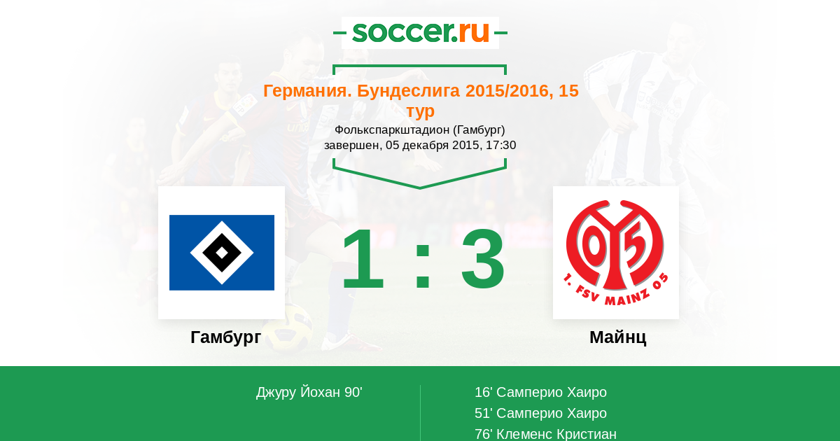 Протокол матча Гамбург против Майнц