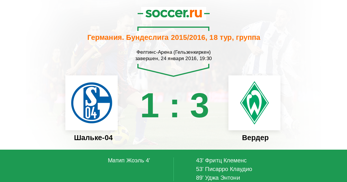 Протокол матча Шальке-04 против Вердер