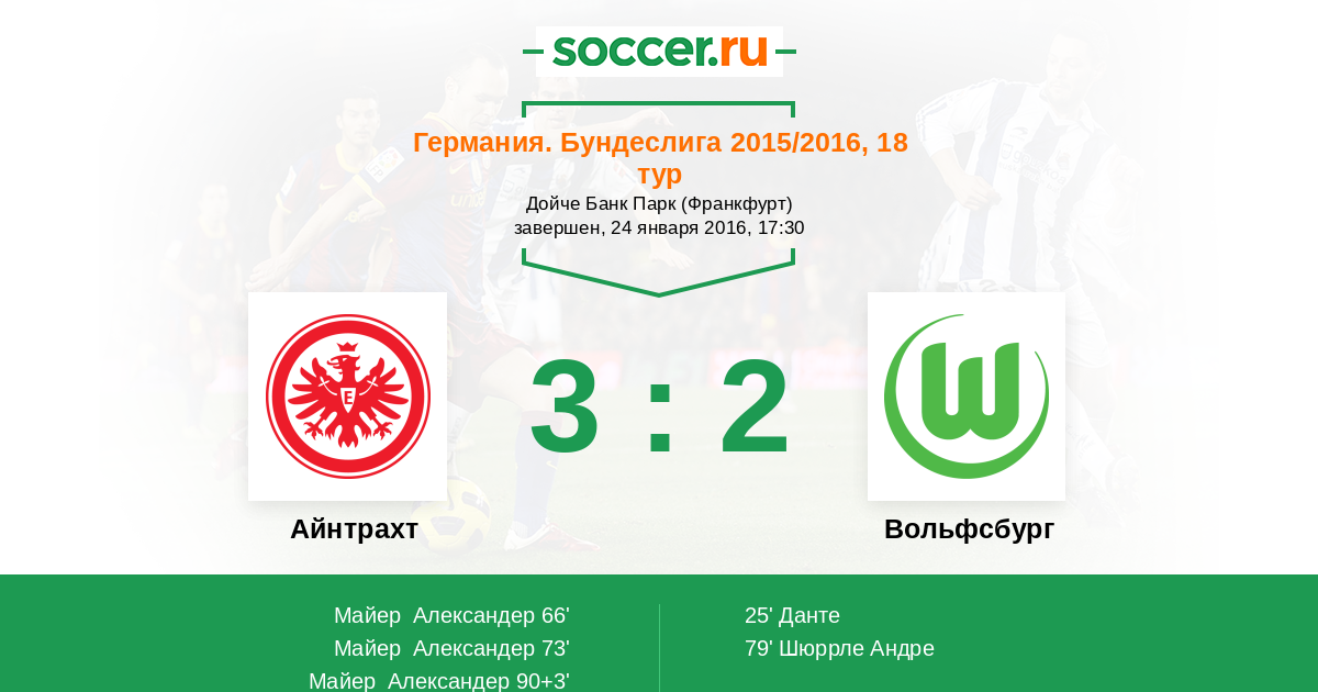 Протокол матча Айнтрахт против Вольфсбург