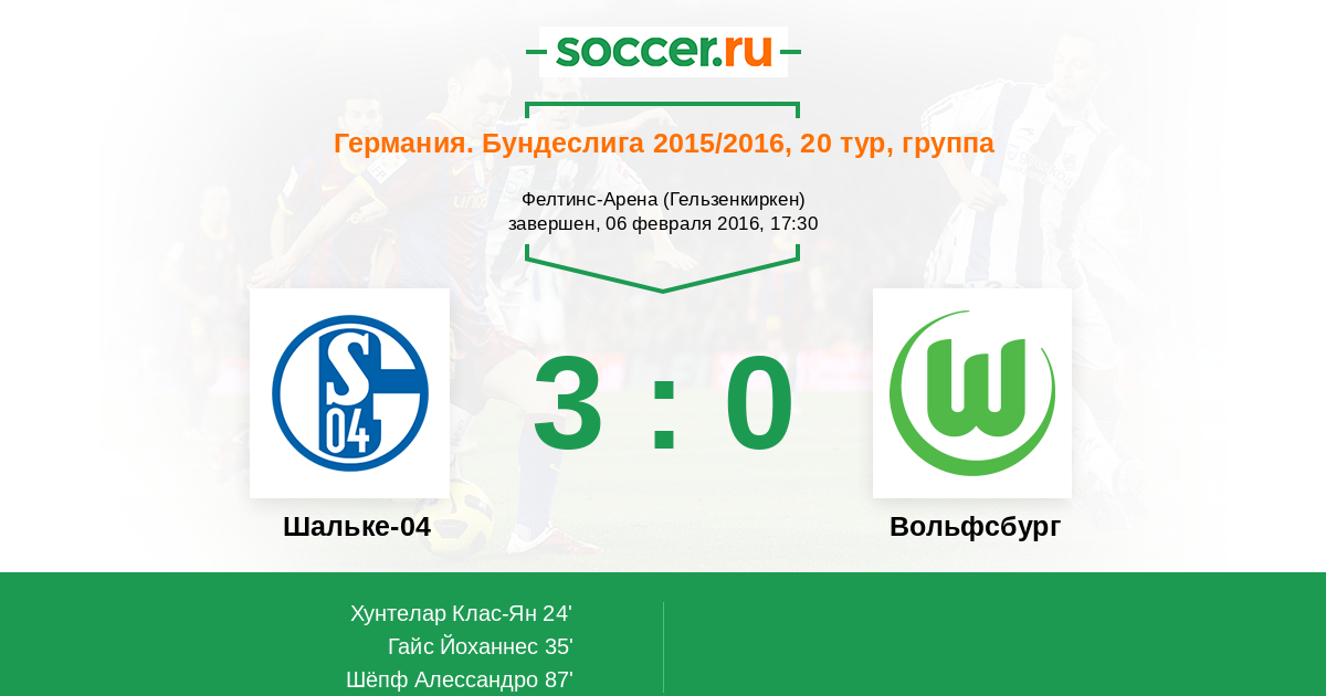 Протокол матча Шальке-04 против Вольфсбург