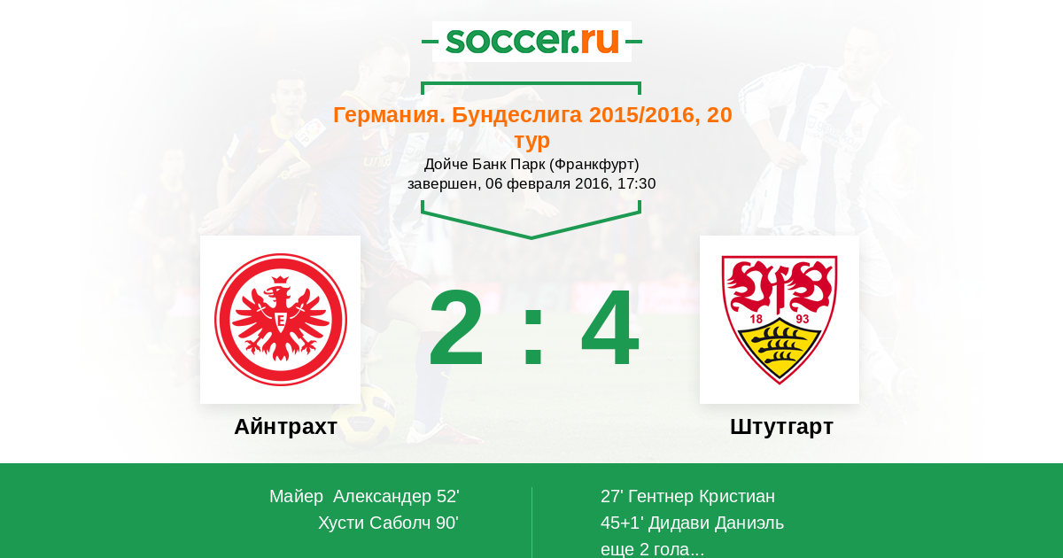 Протокол матча Айнтрахт против Штутгарт