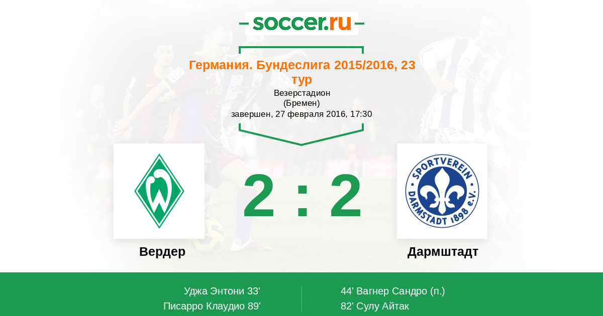 Протокол матча Вердер против Дармштадт