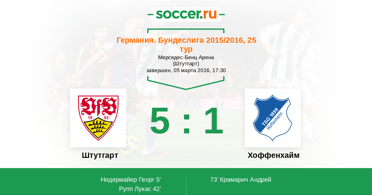 Протокол матча Штутгарт против Хоффенхайм