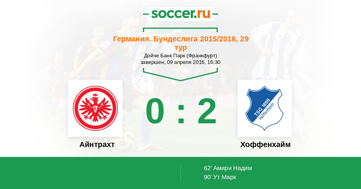 Протокол матча Айнтрахт против Хоффенхайм