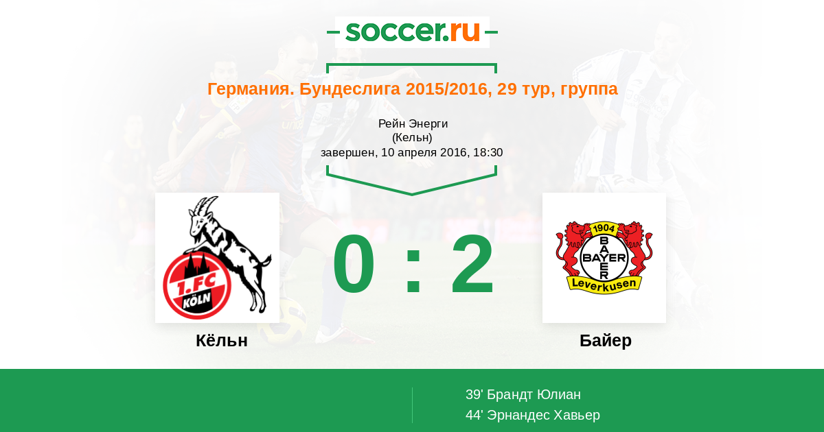 Протокол матча Кёльн против Байер