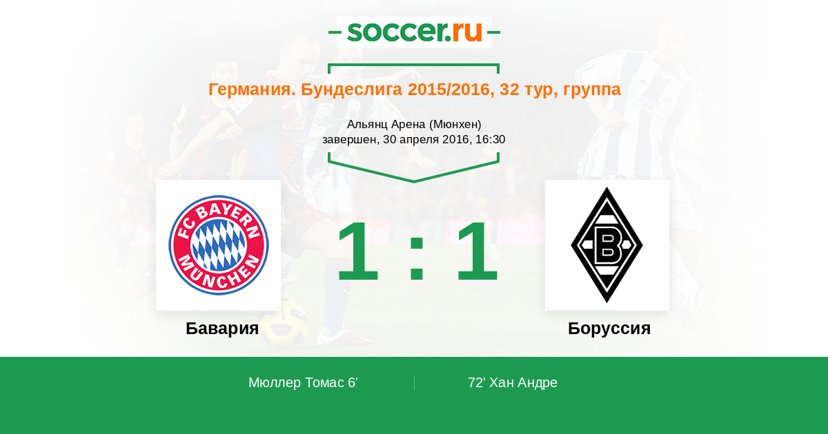 Протокол матча Бавария против Боруссия