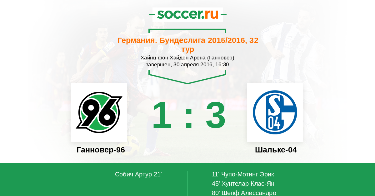 Протокол матча Ганновер-96 против Шальке-04