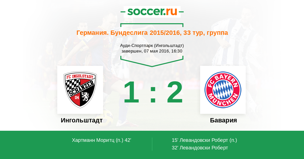 Протокол матча Ингольштадт против Бавария