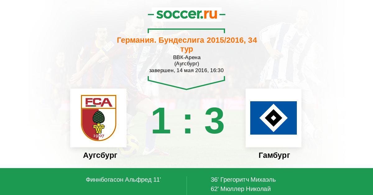 Протокол матча Аугсбург против Гамбург