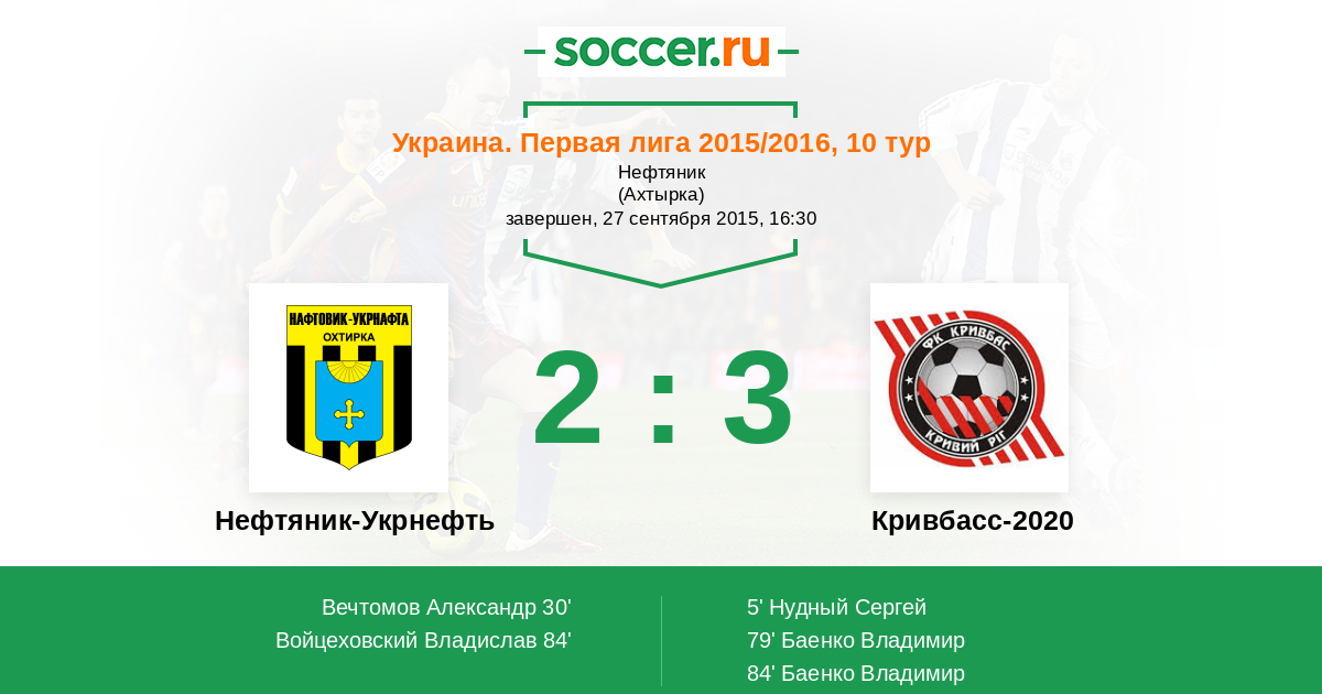 Протокол матча Нефтяник-Укрнефть против Кривбасс-2020