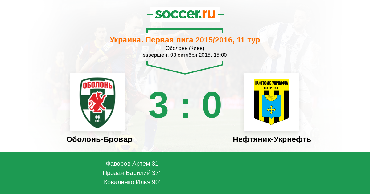 Протокол матча Оболонь-Бровар против Нефтяник-Укрнефть